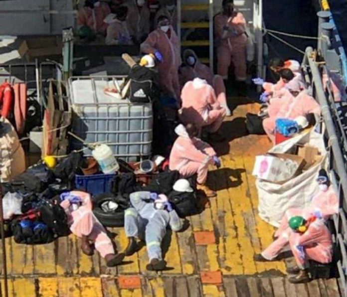 “My son said only on Friday they were tested and all the results came in positive but they weren’t taken off of the platform until this morning (Sunday) at about 10 am by a shuttle boat. The boat sailed to Point Galeota’s port but there was no one there to receive them, so my son and the rest of them were left in the outer deck as they weren’t allowed inside the boat because of the COVID-19,” the worried mother said.